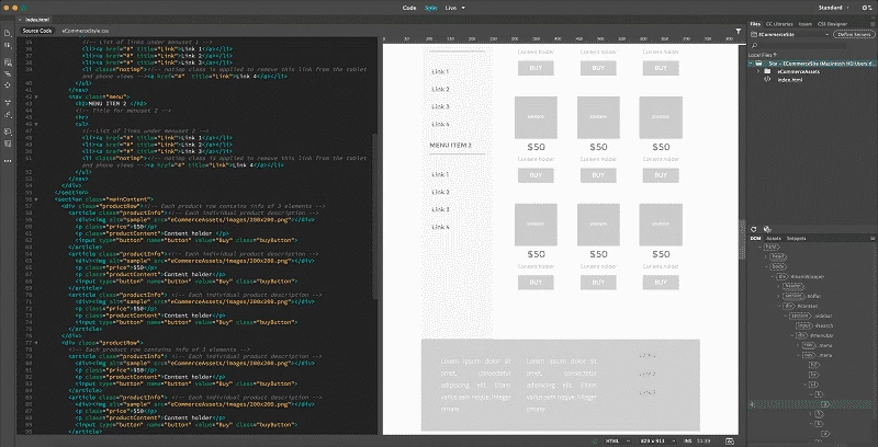 Program, sayfaları yayınlamadan önce kontrol etmek için Live View, ekran boyutlarına uygun çeşitli stilleri uygulamak için CSS3 ve HTML5, e-ticaret sitelerini düzenlemek ve oluşturmak için Business Catalyst paneli, dosyaları kaydetmek ve yüklemek için FTP ve zamandan ve işten tasarruf etmek için kullanılan Adobe Creative Suite gibi bir web sitesini tasarlamak ve geliştirmek için gereken tüm temel araçlarla donatılmıştır.